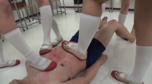 床に這いつくばった男の背中や頭に、容赦なく少女たちの足が乗せられる。