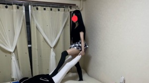激カワ女子校生がM男を縛り付けてパンティを頭にかぶせチ〇ポを電マ責めと高速手コキ