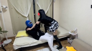 キャットスーツの女3人に押さえつけられ「やめろー!」と叫んでも容赦なく手コキされる